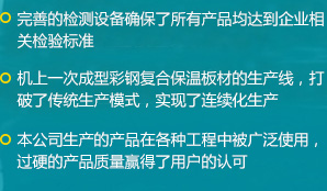 公司是一家瞄準(zhǔn)國際、國內(nèi)市場,集科、工、貿(mào)于一體的綜合性公司,擁有各類先進的設(shè)備100余臺(套),公司自主研發(fā)了新型保溫材料及彩鋼復(fù)合保溫板材連續(xù)生產(chǎn)工藝,建成了機上一次成型彩鋼復(fù)合保溫板材的生產(chǎn)線...